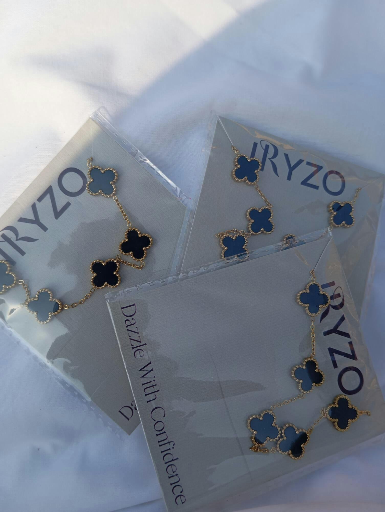 Unique Design: Features five clover charms with black and white inlays.